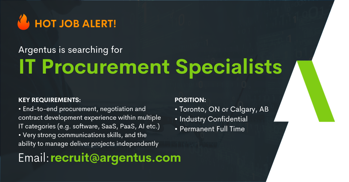 So if you’re a procurement professional with solid IT category experience under your belt, reach out to Argentus today! Send an email to recruit@argentus.com with your current resume, outlining your background in IT Procurement, as well as your negotiation and contracting skills.